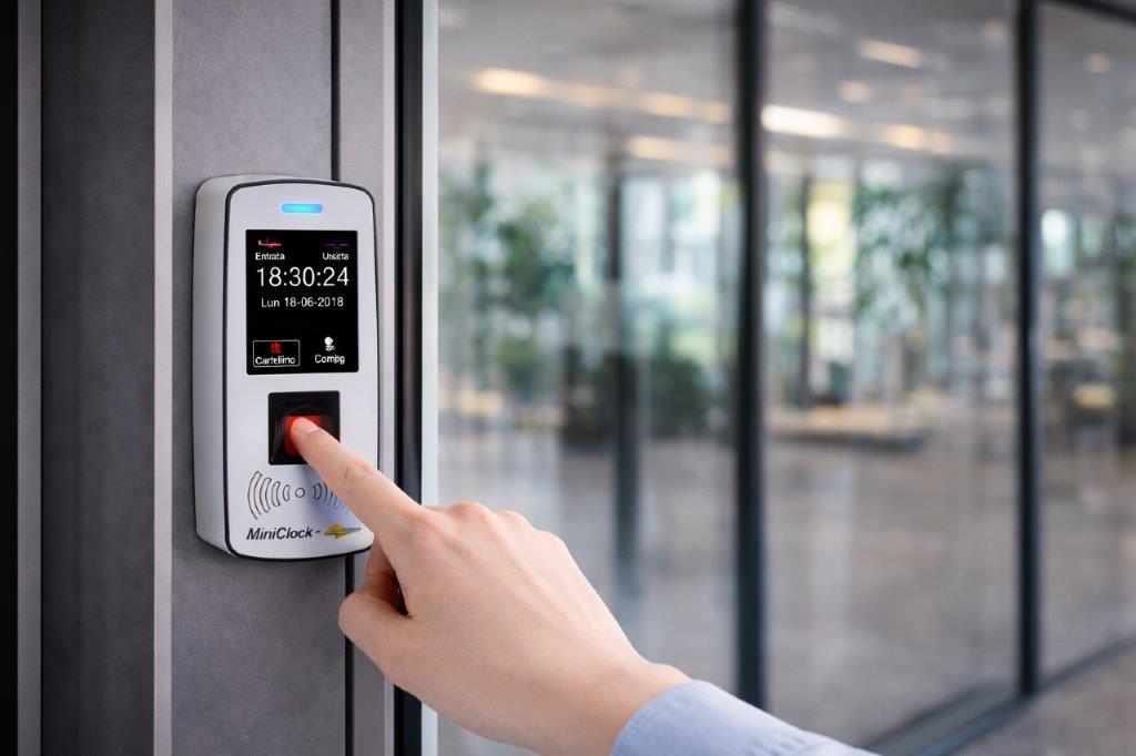 Oggi la scena è molto diversa. I terminali digitali hanno sostituito quei dispositivi ingombranti e rumorosi. Piccoli, discreti, spesso montati accanto alla porta d’ingresso, registrano la presenza con un semplice passaggio del badge o con altri sistemi di identificazione.